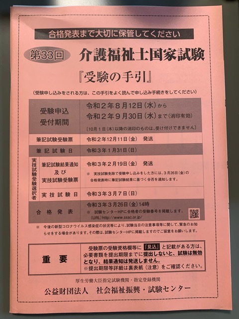 2020/08/12 Category : 未選択 8/12介護福祉士国家試験 本日から介護福祉士国家試験の受験申込スタートしています。新型コロナで社会環境が変化している中、社会的インフラとして「介護」が浮き彫りになりました。今後は更に形を変えながら、想像もつかない様な場所で介護職が活躍する未来が来るのでしょう資格取得しておいて損はないですよ PR