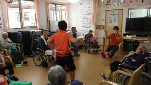 急に、山本リンダの「狙い撃ち」を踊りはじめ、体操の邪魔をするスタッフが・・(-_-;)