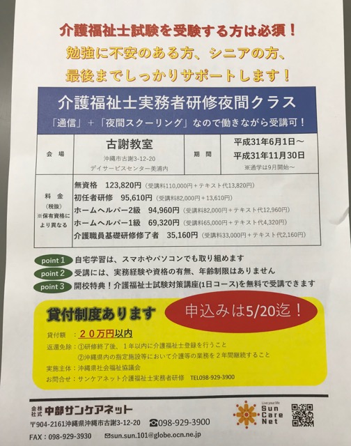 去った5/20で今年度の介護福祉士実務者研修の募集は締め切りとさせていただきました。