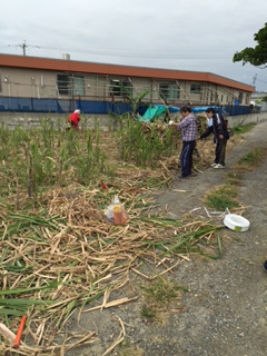 ボランティアで施設裏手にあるサトウキビ農家のキビ狩りを手伝いました!(^^)!