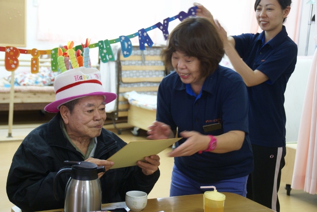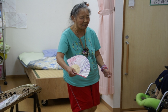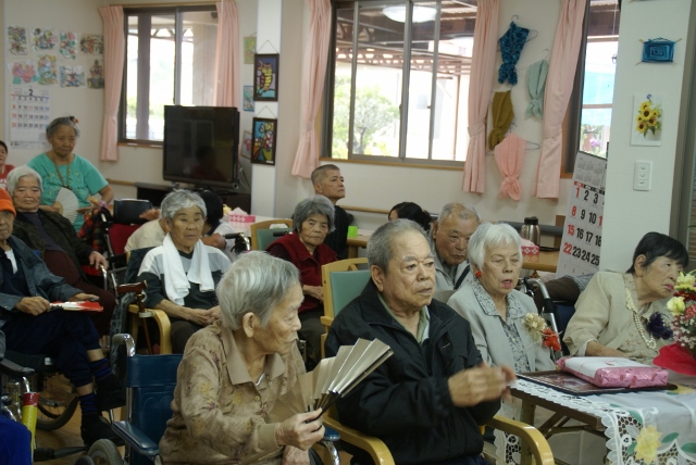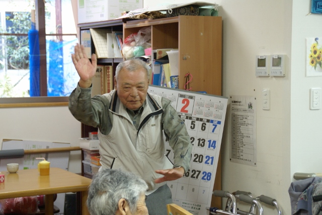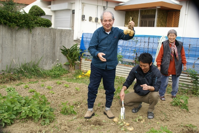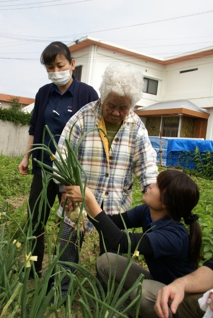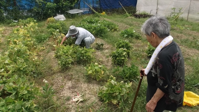 デイスタッフで農業歴20年の伊禮さんは手際良く刈っていましたemoji