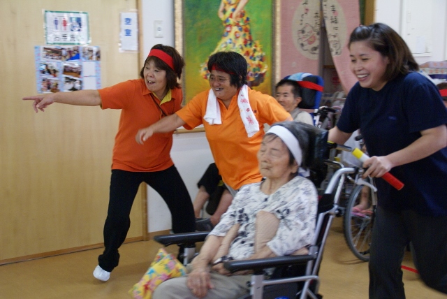 2014/10/17 Category : 未選択 運動会 今年もやるぞ!デイサービスセンター美浦大運動会!! まずは各チームリーダーによる選手宣誓 毎年恒例、お馴染みの玉入れは白組勝利! 今年からの新種目リレーは赤組勝利! こちらも新種目の綱引き!軍配は引き分け!!所長、力みすぎてズボン切れました・・・ 最後のパン食い競争は白組勝利!今年の成績は・・・2-1で白組の勝利!!楽しかったですね~みなさん大変おつかれさまでした PR