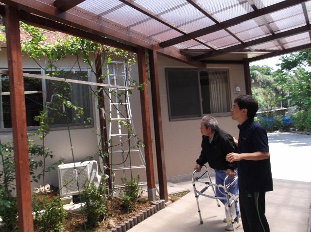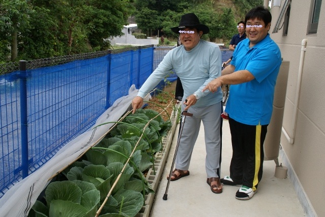 2013/05/28 Category : 未選択 チラシを作成しながら考えたこと チラシを作る際に、いつも他事業所のデイサービスのパンフレットを参考にさせていただいています。最近ではめっぽうリハビリ重視型のデイサービスが主流だなと感じます。当デイサービスといえば、マシンは一台も設置しておらず、機能訓練は、生活動作を主とした訓練。開設当初は、マシンがないから良い訓練ができない、集客できないと、外的要因へ不満をもらしていましたが、今では、思考がガラリと変わりました。確かにマシンがあれば、利用者が選択できるサービスが増え、身体機能向上に直ぐに結びつけることができ、かつ事業としても日中のプログラムも設定しやすいと思います。しかし、マシンがない当デイサービスでも、朝の会での全体体操、個別で生活動作中心の機能訓練、フットケア。1日2回の歩行訓練、昼食前の口腔体操、レク活動前後の軽体操、帰りの会の軽体操と意外と体を動かす事が多く、午後のレク活動を含めるとかなりの運動量になります。何より利用者と密接に関わりながらのプログラムになりますので、スタッフが利用者個々の状態をとても良く把握できています。ほんとに細かいことまで気付いて報告してくれますよ(^o^)リハビリ重視の利用者様へは期待に応えられない部分も確かにあると実感していますが、当デイサービスが好きで、当デイサービスを必要とされている利用者様がいる事も実感しています。他の真似事ではなく、当デイサービスでしか提供できない「サービス」を追求していくことで、事業所カラーが明確になり、地域に認められ、自然と利用者様が集まるという流れを作っていきたいと思います。ちなみに当デイサービスの特徴である屋外歩行訓練は、中庭の花を見たり、菜園になっている野菜を収穫しながら行っています。↓