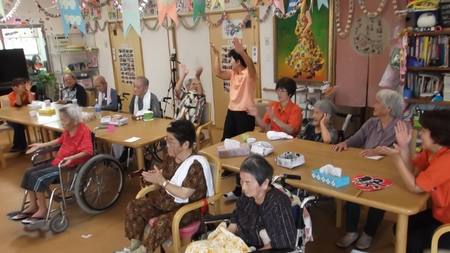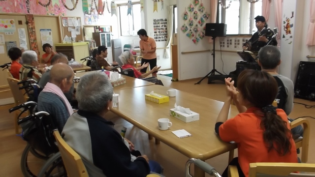 2013/05/31 Category : 未選択 新里紹栄会長の三味線♪ 当施設を建築したシンケンハウスの新里紹栄会長による三味線ショー♪空いた時間があれば、連絡をくださりボランティアで演奏し歌ってくれます。今日も突然の訪問でありましたが、ショー開始から利用者さんは大盛り上がり!三味線に合わせて踊りはじめ、スタッフも一緒に楽しんでいました(^o^)やっぱり、うちなんちゅは三味線の音色に心踊らされますね♪紹栄会長ありがとうございました! PR
