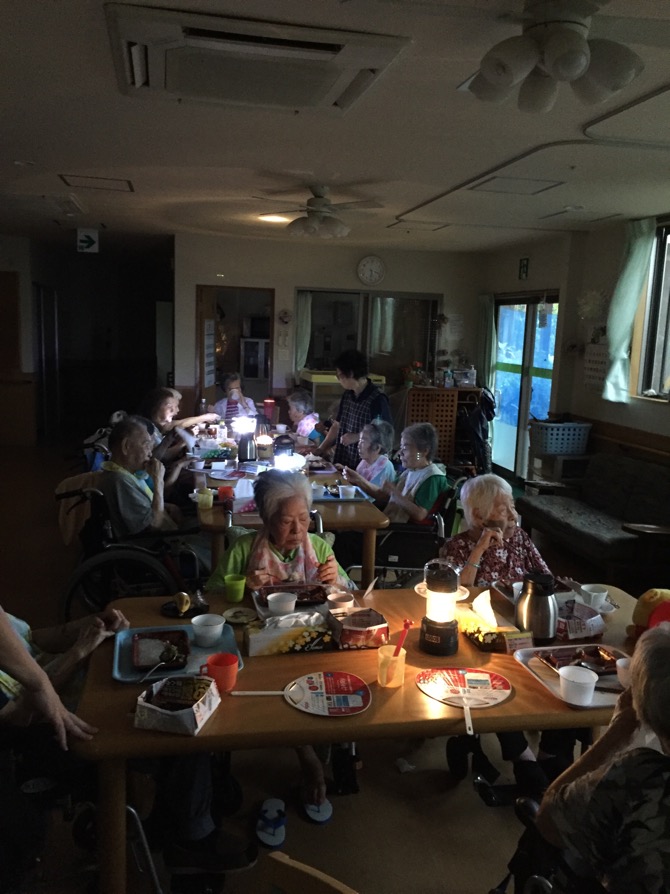 2018/10/01 Category : 未選択 停電 みなさん台風の影響はどうでしたか?ホームは利用者さんの体調不良もなく無事でしたが、丸二日停電しました。明かりやテレビがない中で電気のありがたみをつよくつよく感じました(*´-`)また25号が近づいいます!みなさん油断しないように!