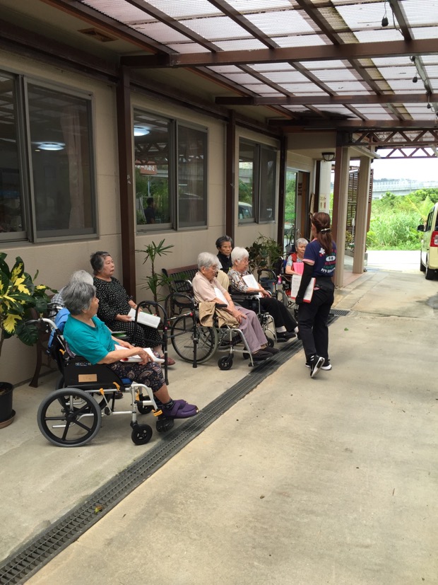中庭に出て日光浴をしながら歌、体操をしましたよ^_^