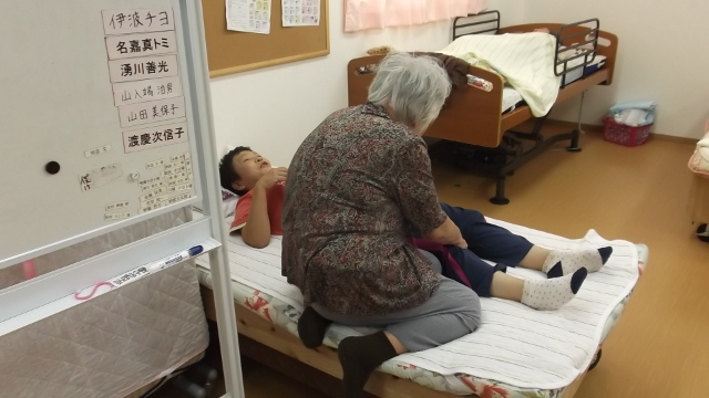 2014/10/04 Category : 未選択 利用者さんからのプレゼント 事務仕事中にスタッフが「所長!早く来て!」ホールに出ると、いつものマッサージをしている風景が・・ん? 何か違う?? いつもと逆だ! 毎日マッサージしてもらっている側のNさんがマッサージをする側へいつものお礼にとスタッフさんへプレゼントとのことちなみに男性スタッフへのマッサージは¥5,000取るそうです(笑)お金払うので次回よろしくお願いします~