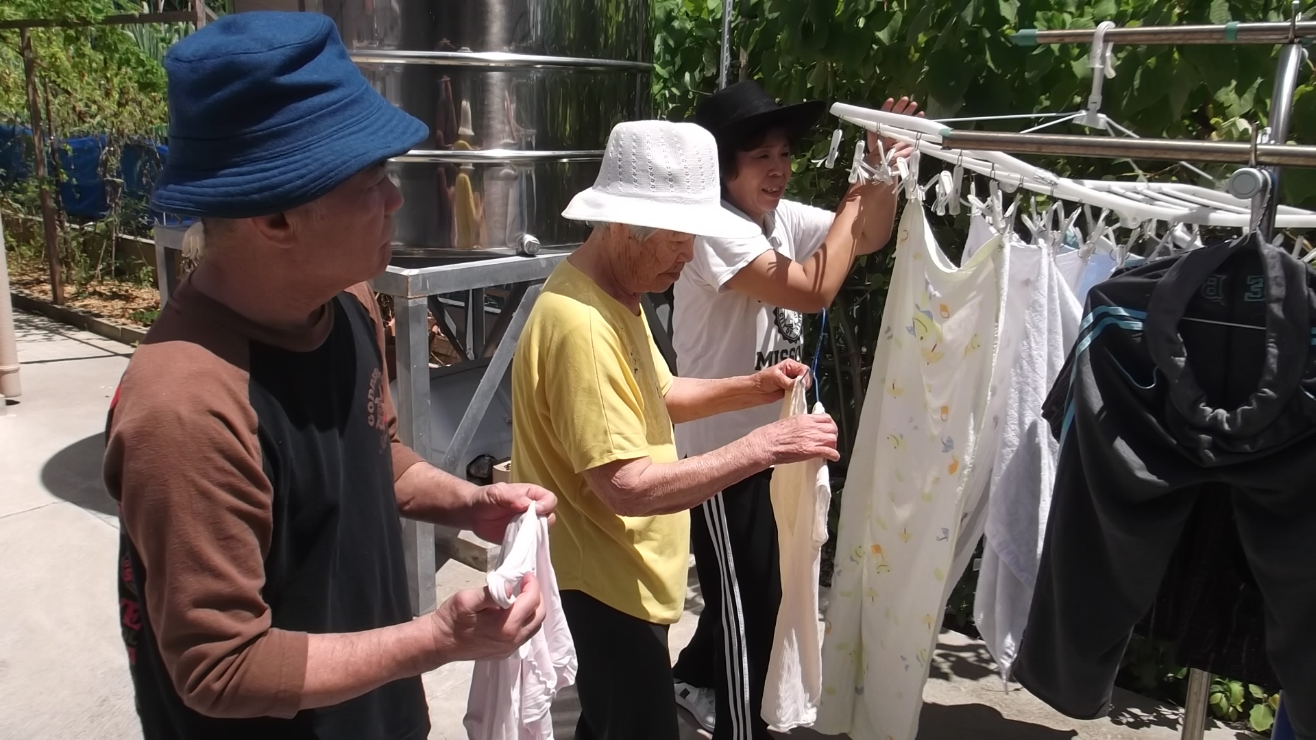 テレビを見ていた利用者を誘って、洗濯干し場へ